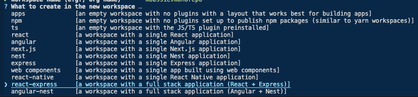 react, angular, vue, express, next.js 등 설정할 수 있다.